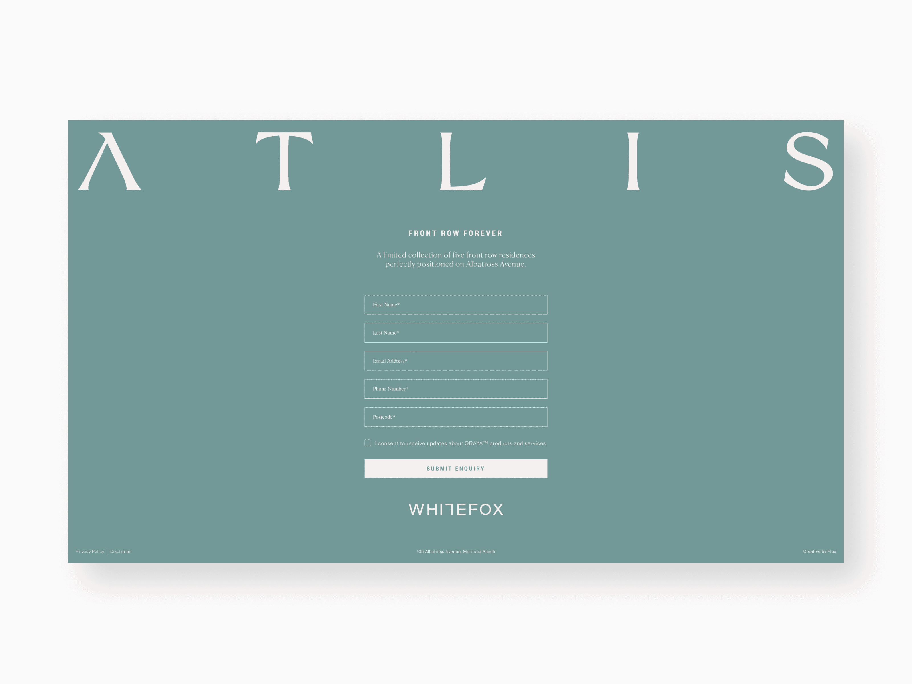 ATLIS features a limited collection of five "front row" residences on Albatross Avenue. I created a digital presence for GRAYA™ that mirrors the project's architectural sophistication. The design utilizes immersive full-width renderings and a refined inquiry system to build exclusivity and capture high-intent buyer data.