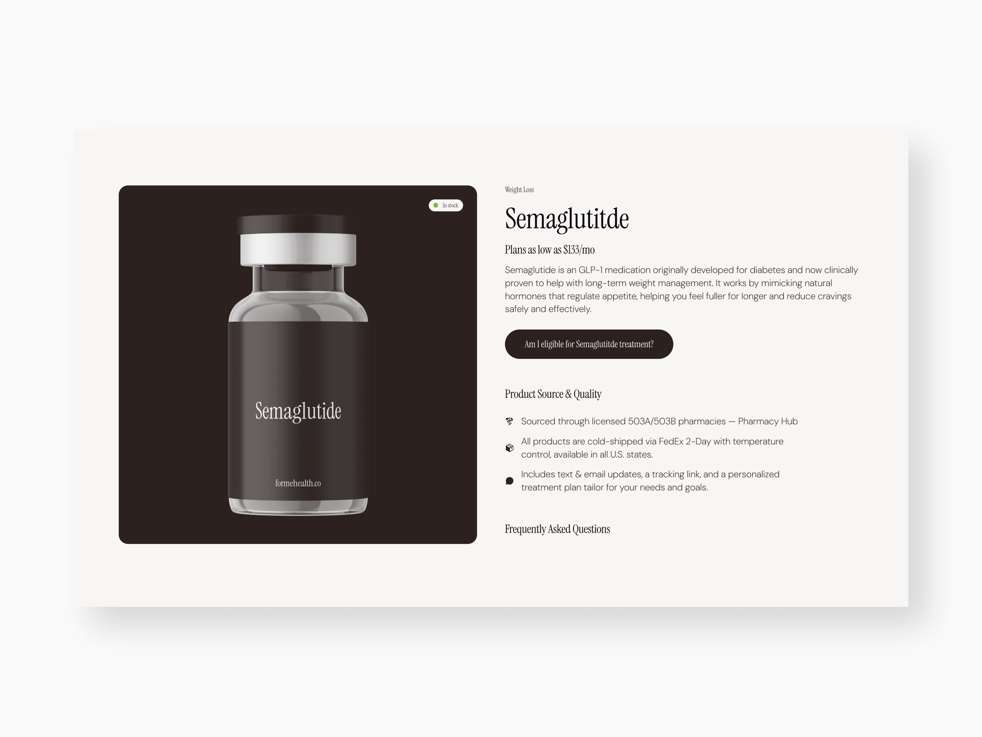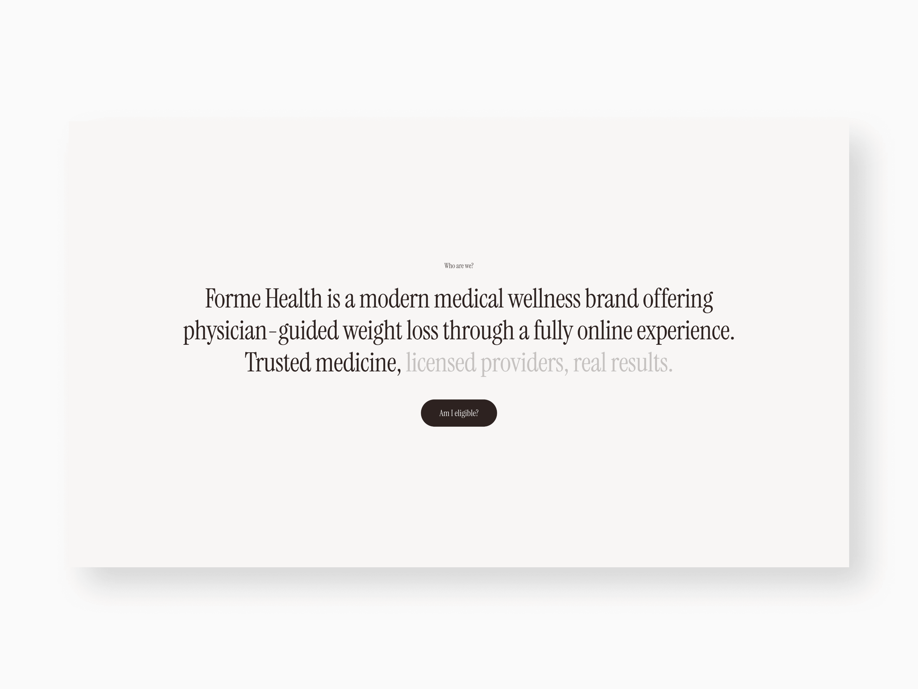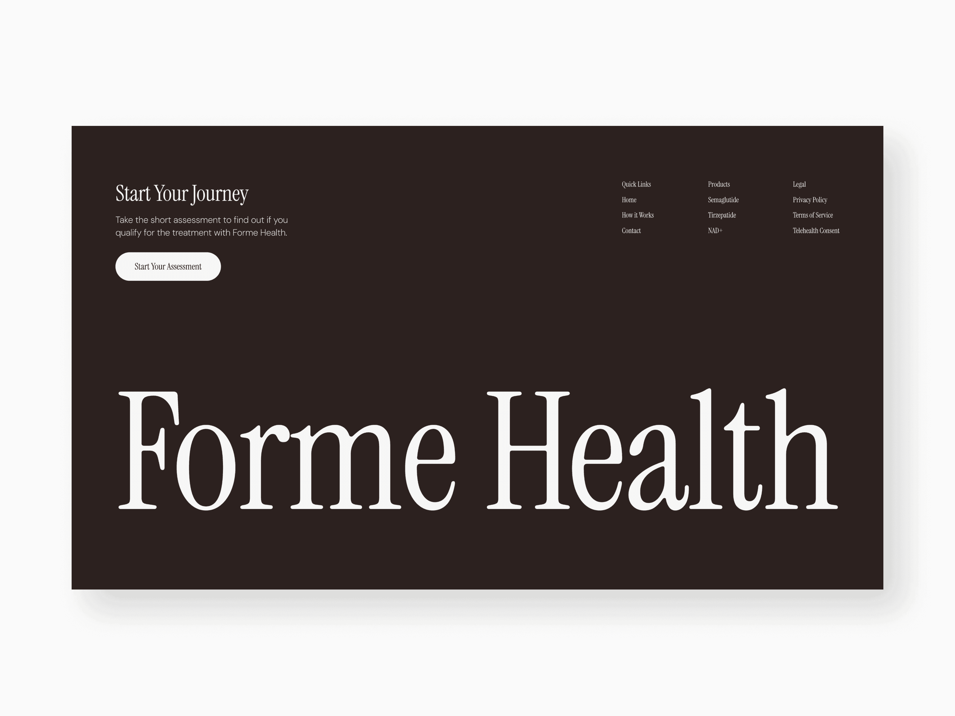 Forme Health is a modern medical wellness brand providing physician-guided weight loss through a fully digital experience. I developed a trusted, clinical, yet approachable website that simplifies the patient journey. The design features a streamlined three-step onboarding process, transparent subscription pricing, and deep technical product education.