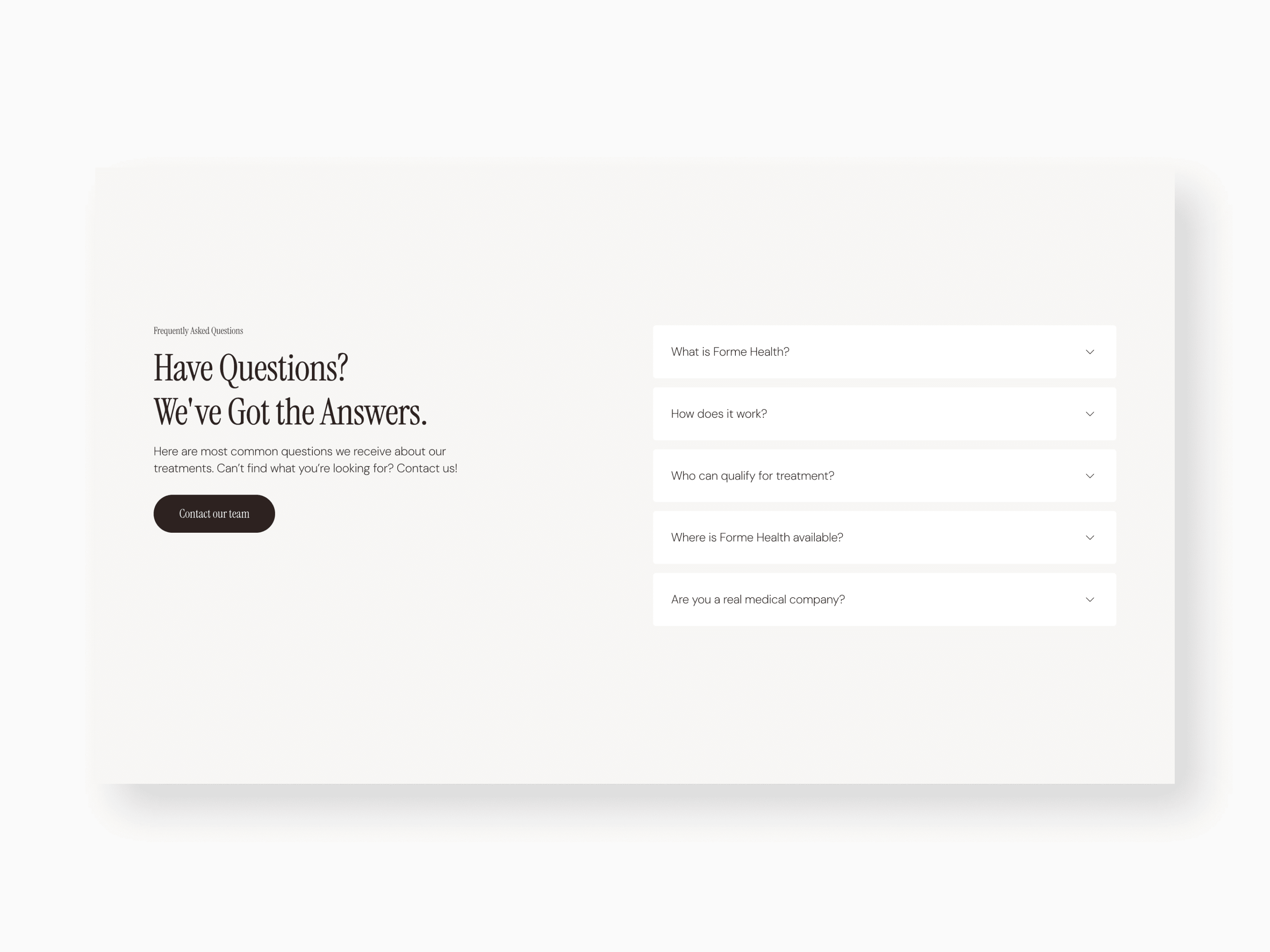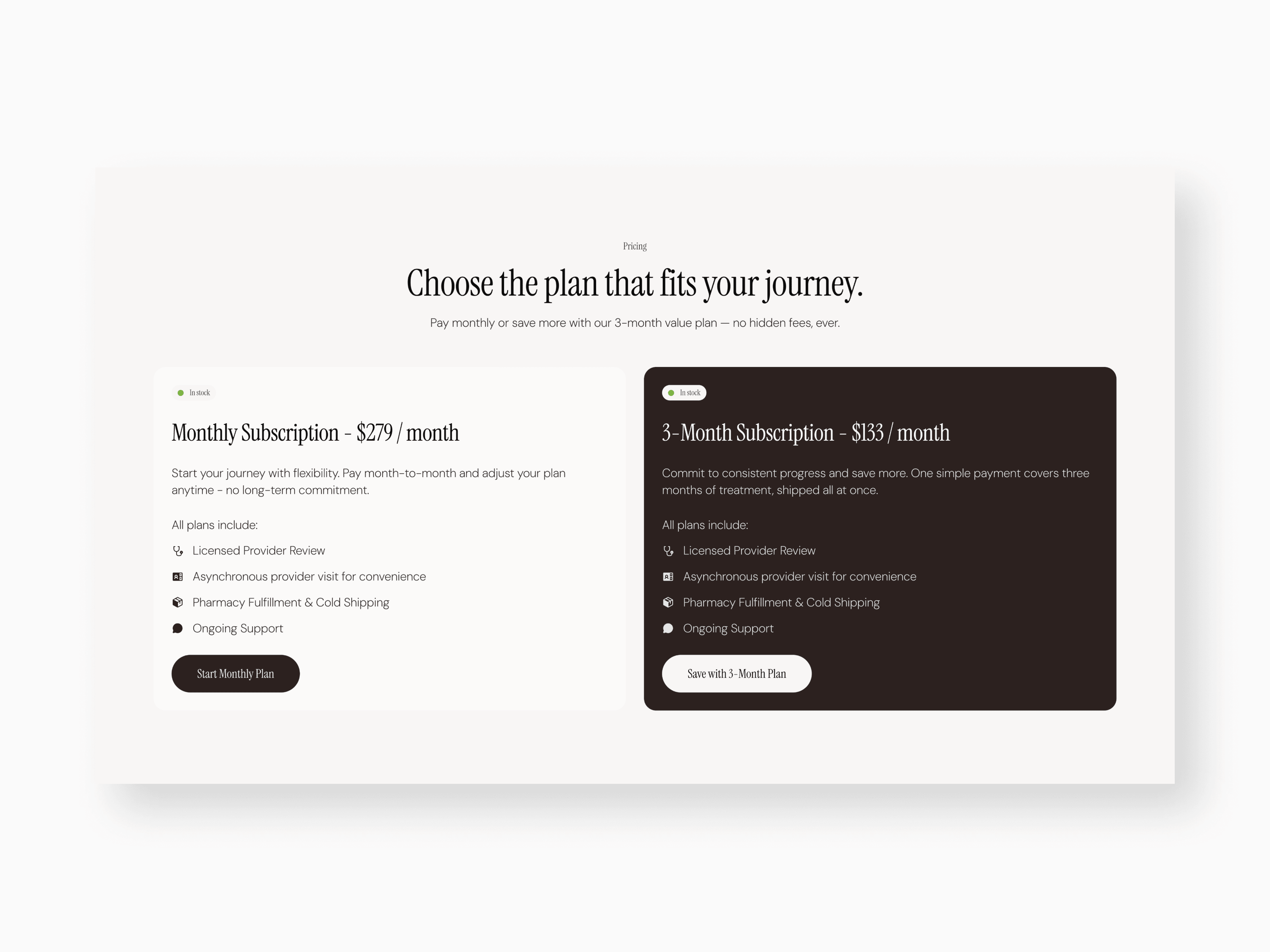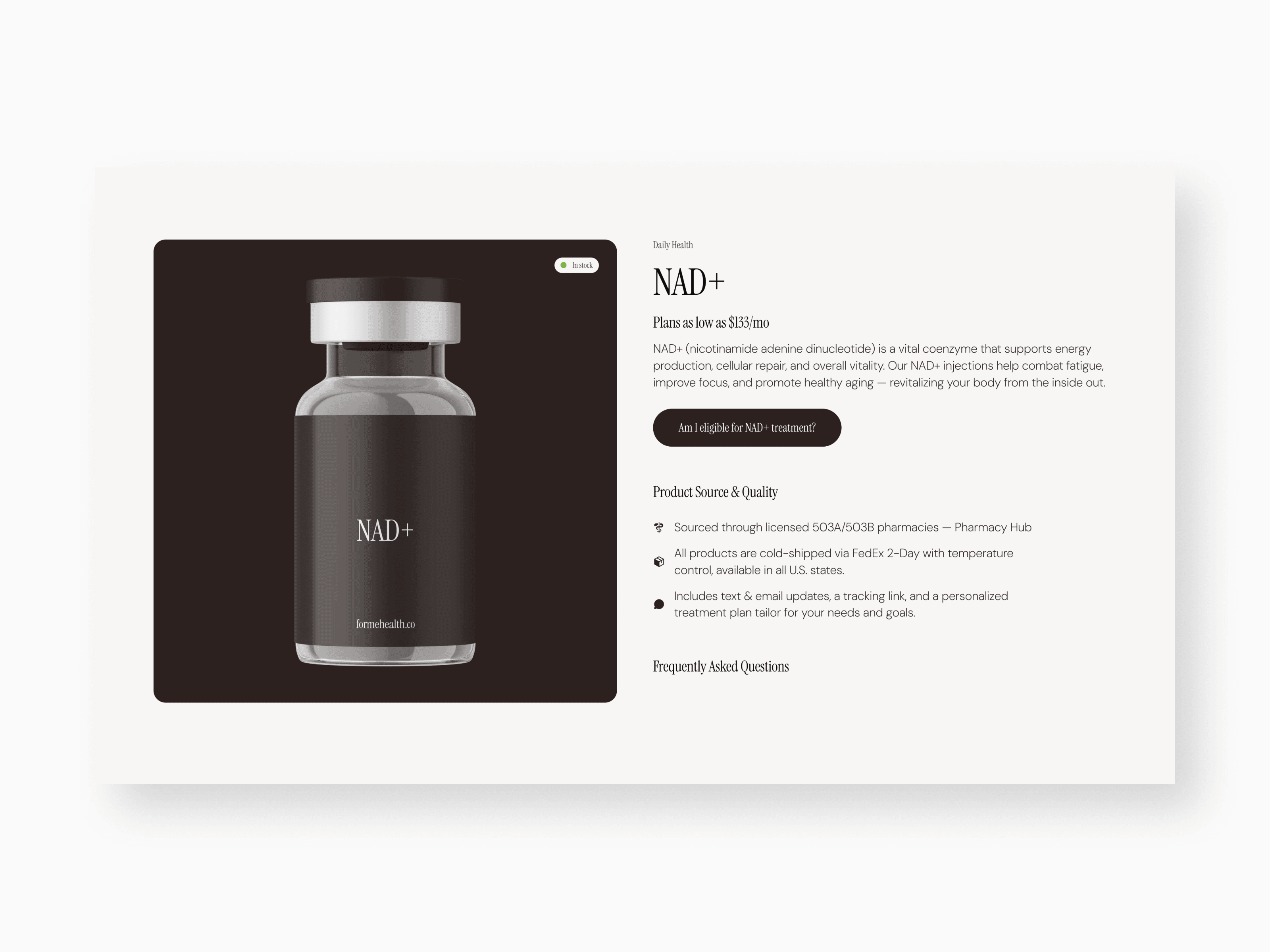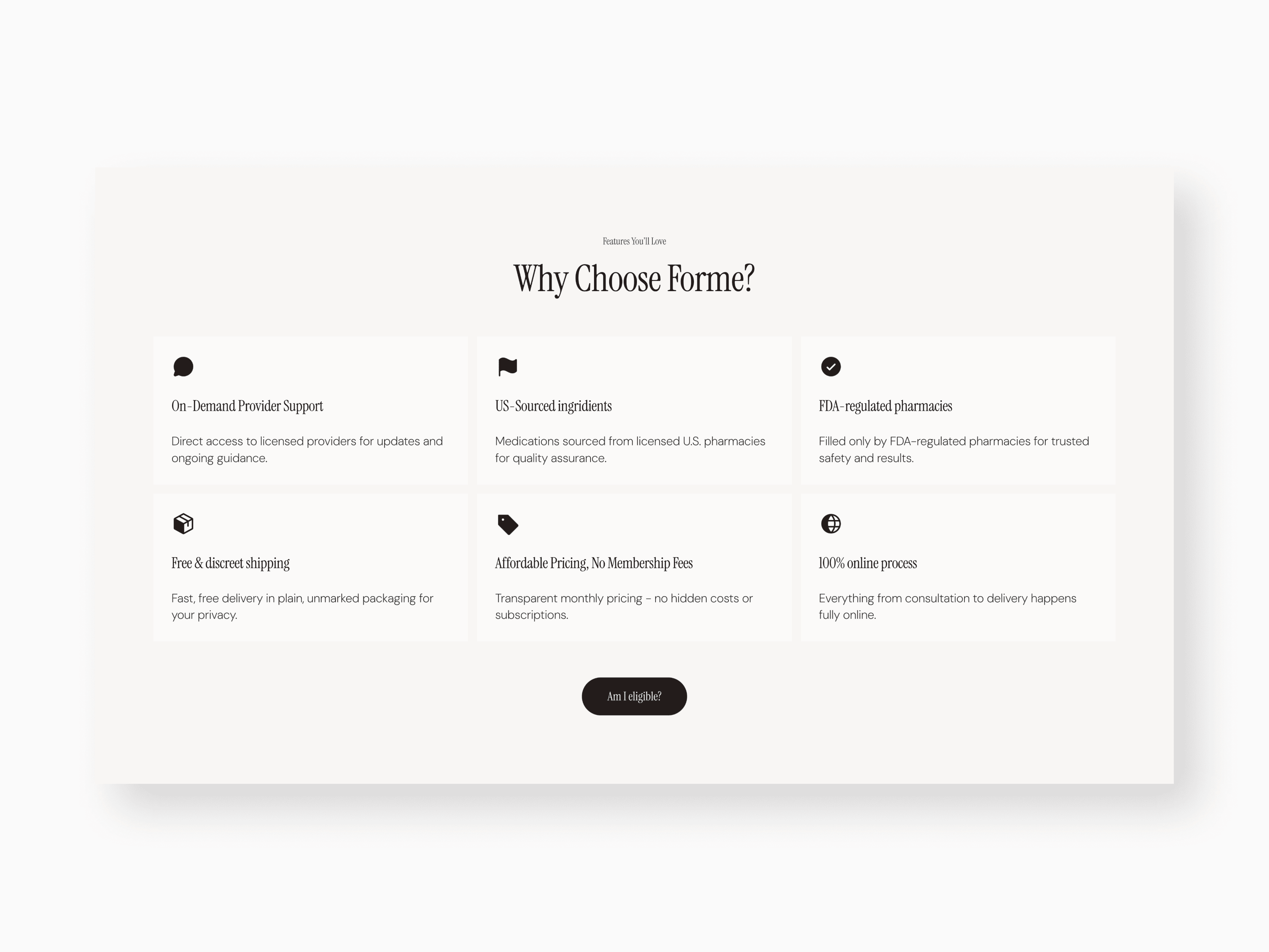 Forme Health is a modern medical wellness brand providing physician-guided weight loss through a fully digital experience. I developed a trusted, clinical, yet approachable website that simplifies the patient journey. The design features a streamlined three-step onboarding process, transparent subscription pricing, and deep technical product education.